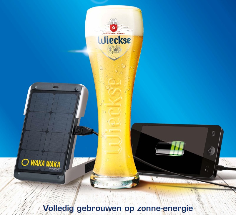 Om deze samenwerking onder de aandacht te brengen kan je vanaf juni gratis je mobieltje opladen met de Wieckse WakaWaka op 50 zonnige terrassen over het hele land. Geniet van de zon, laad je mobieltje op, terwijl je jezelf ‘oplaadt’ met een heerlijk glas Wieckse. Volledig gebrouwen op zonne-energie, is Wieckse het zonnigste bier van Nederland.